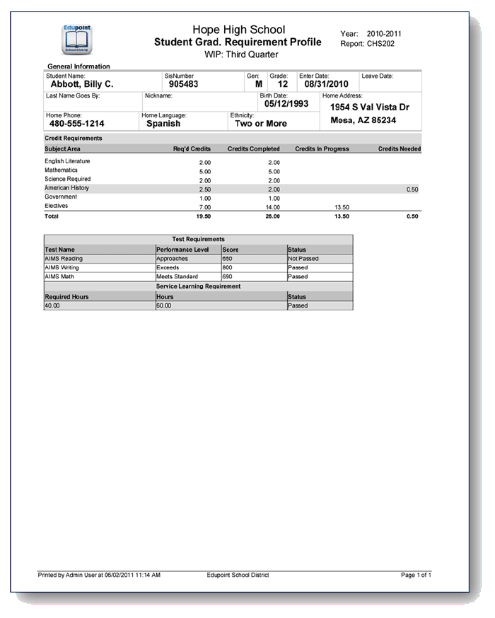 PAD Location: Synergy SIS>Course History>Reports>Individual