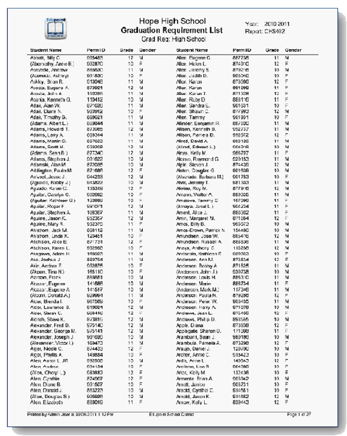 id, grade and gender. High school staff and counselors use this report