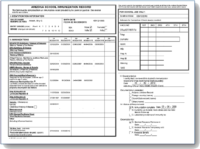 The HLT212 report prints students’ immunization history. This report was written to mirror the State record, with the exception of the State Seal as it is not a State generated document. In addition to the student’s immunization history, the report will display student name, birth date, grade level, gender.