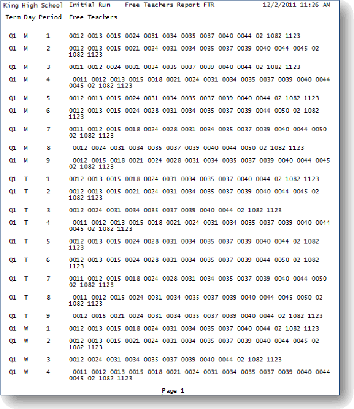 by teacher ID that do not have a section scheduled for the Term, Day,