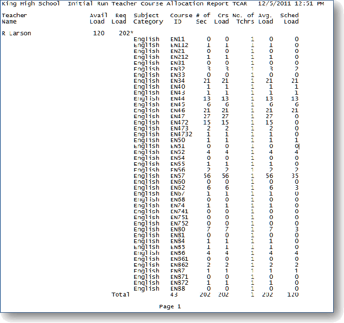 The Teacher Course Allocation Report lists all teachers alphabetically